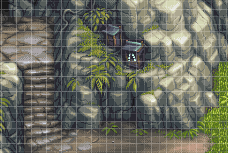 拡大縮小・回転機能がないためすべてドット絵を用意して表現している!