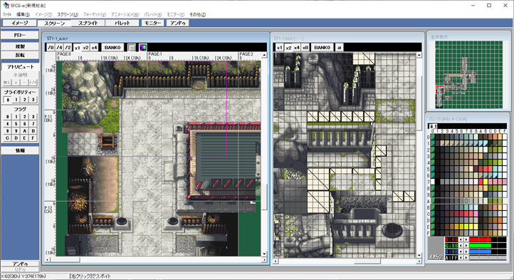 旧ナツメ時代から使い続けられている「SFCGアルファ」は20年以上前から少しづつ拡張を続けられ、今も現役のインハウスドット絵ツール。