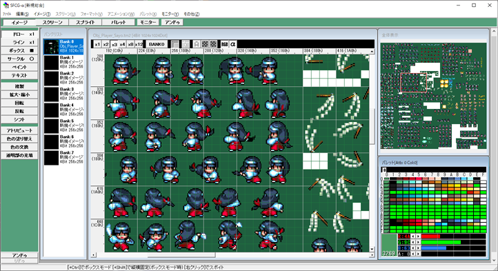 αチャンネル付きの16色パレットを使ったドット絵が編集可能だ!