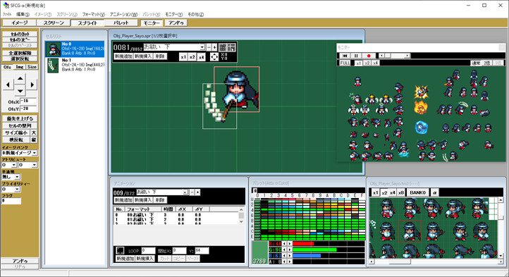スプライト編集では複数の16色画像を重ね合わせることが可能だ。